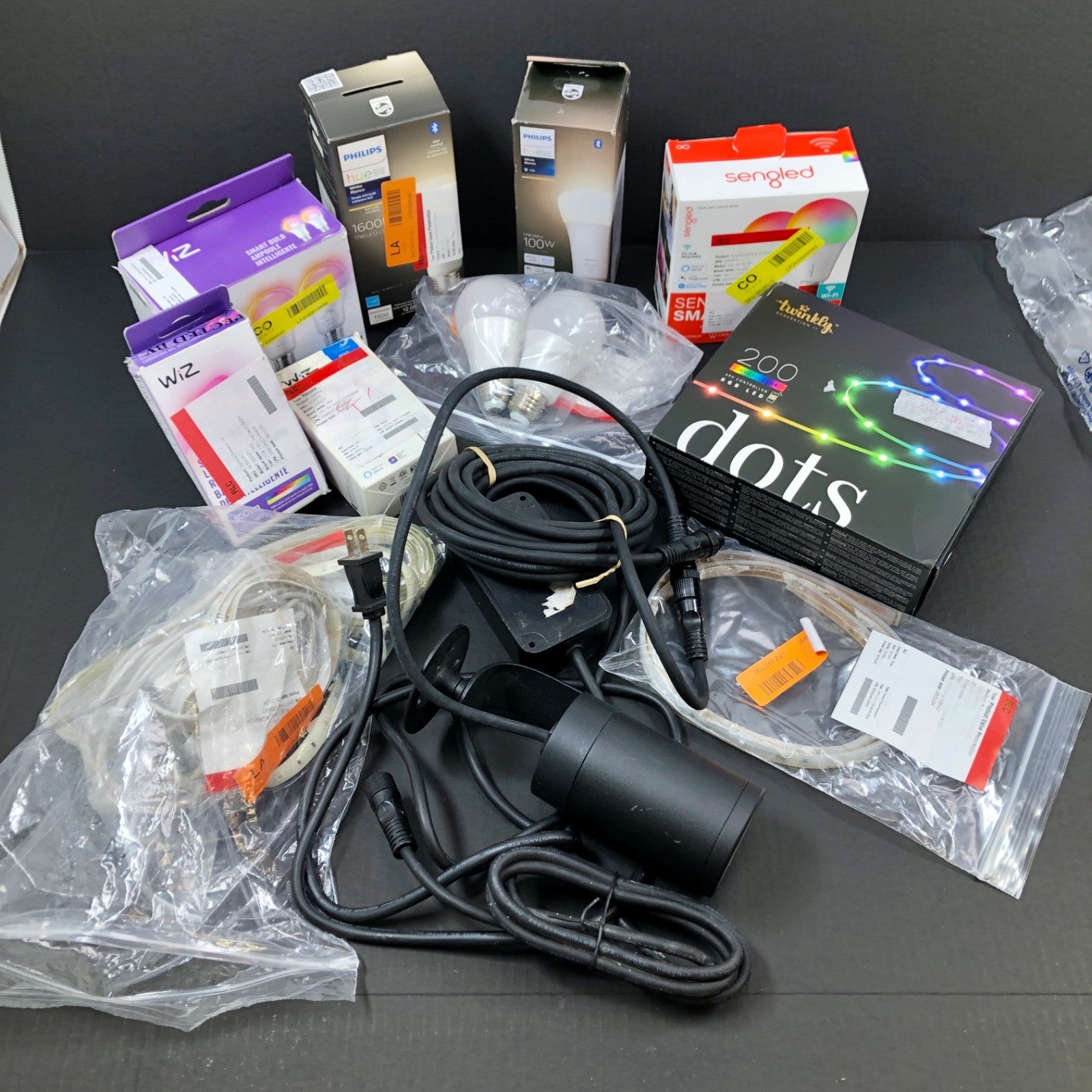 | What's included: | LOT OF BROKEN NON WORKING NOT TEST SMART HOME LIGHTS BULBS ELECTRONICS FOR PARTS Only the items shown in pictures will be included. |