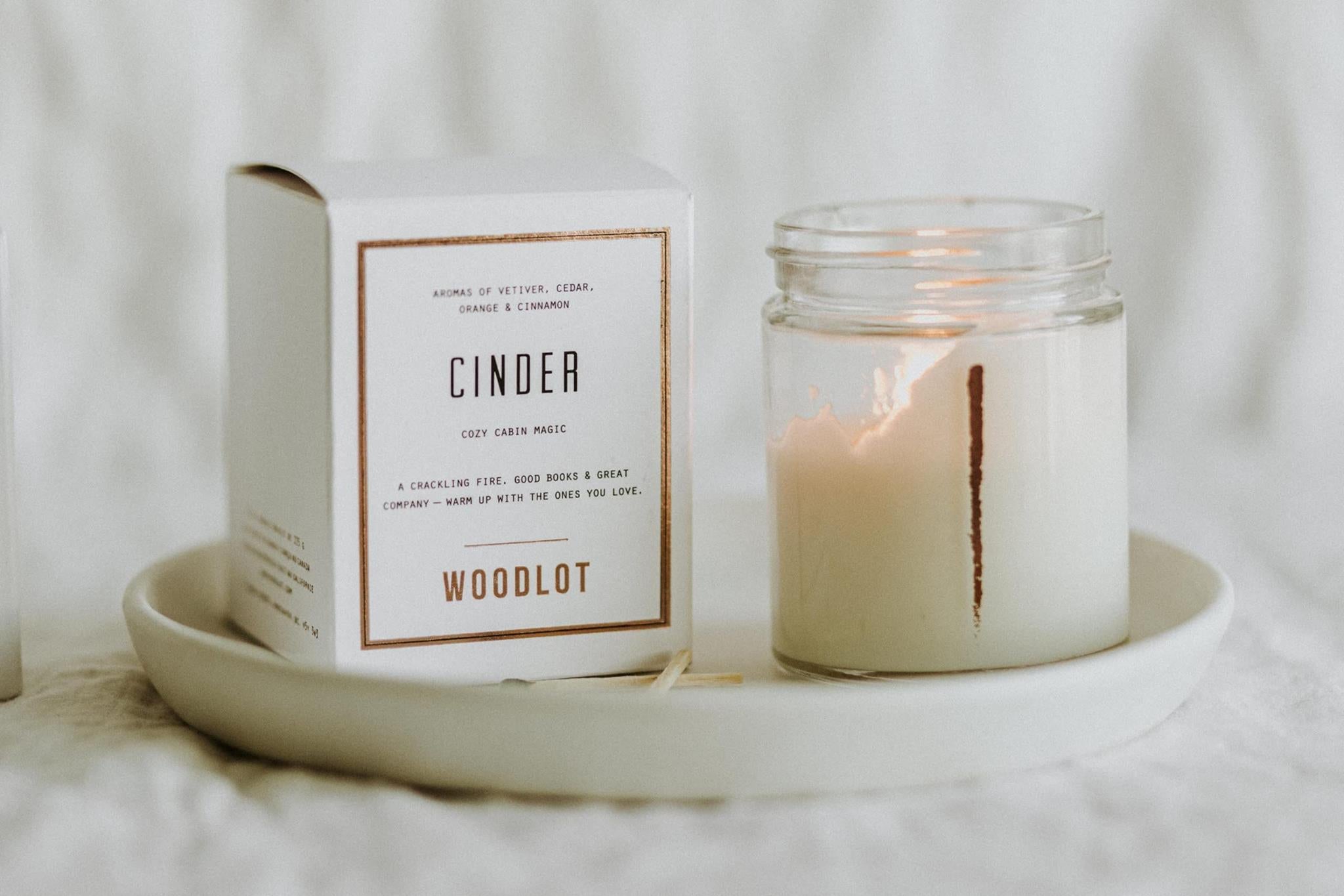 Woodlot Cinder Candle Glass Jar Soy & Coconut Wax Warm Vetiver, Cedar, Cinnamon Essential Oil 8 Oz